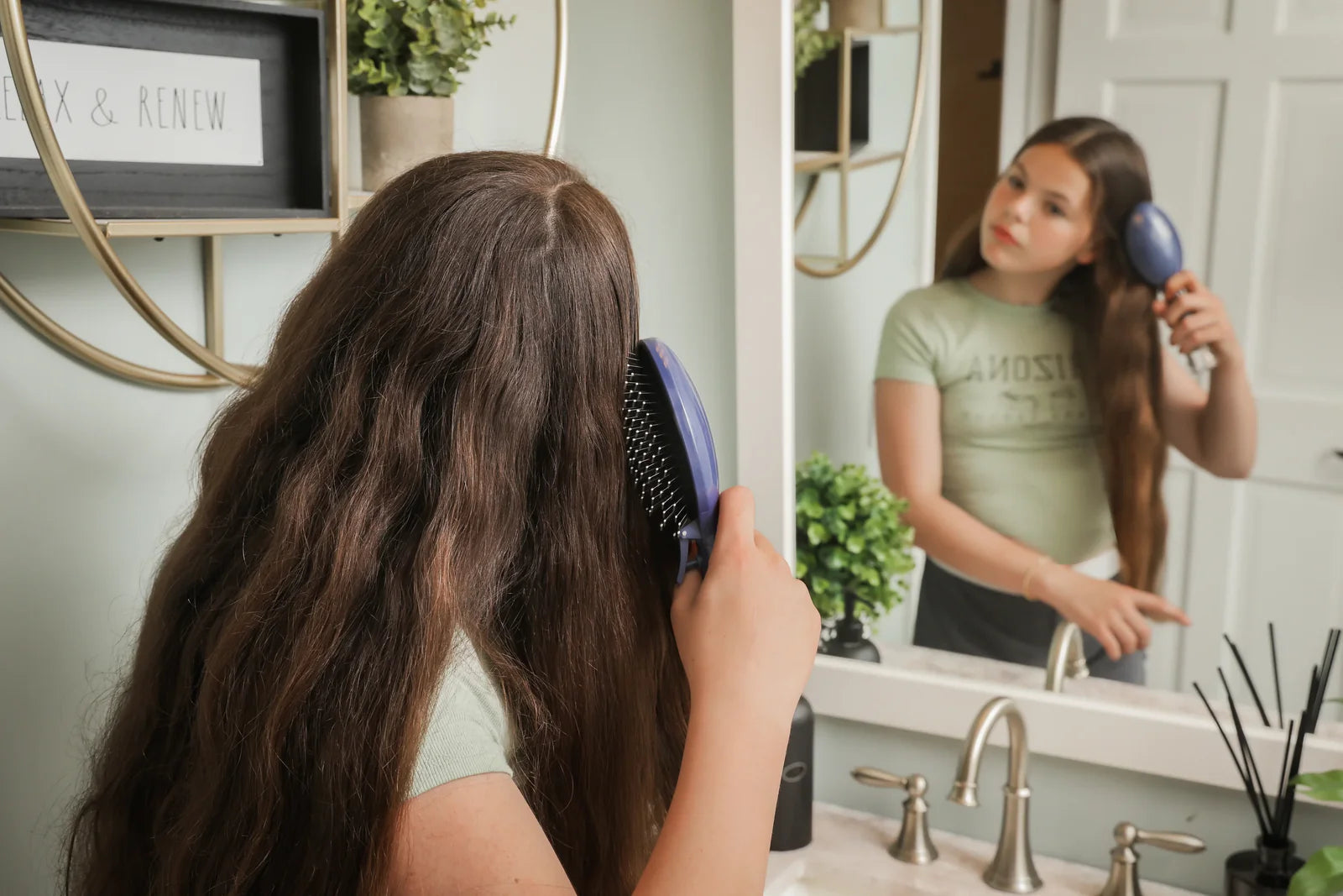Before, brushing dry hair can hurt. Spray bottles drip. Brushes pull. You need two hands and two tools.